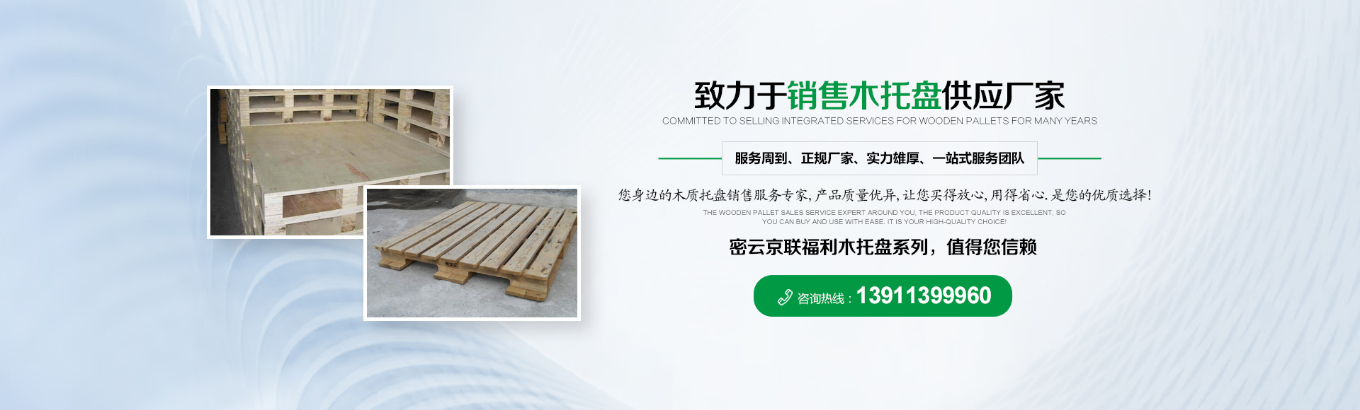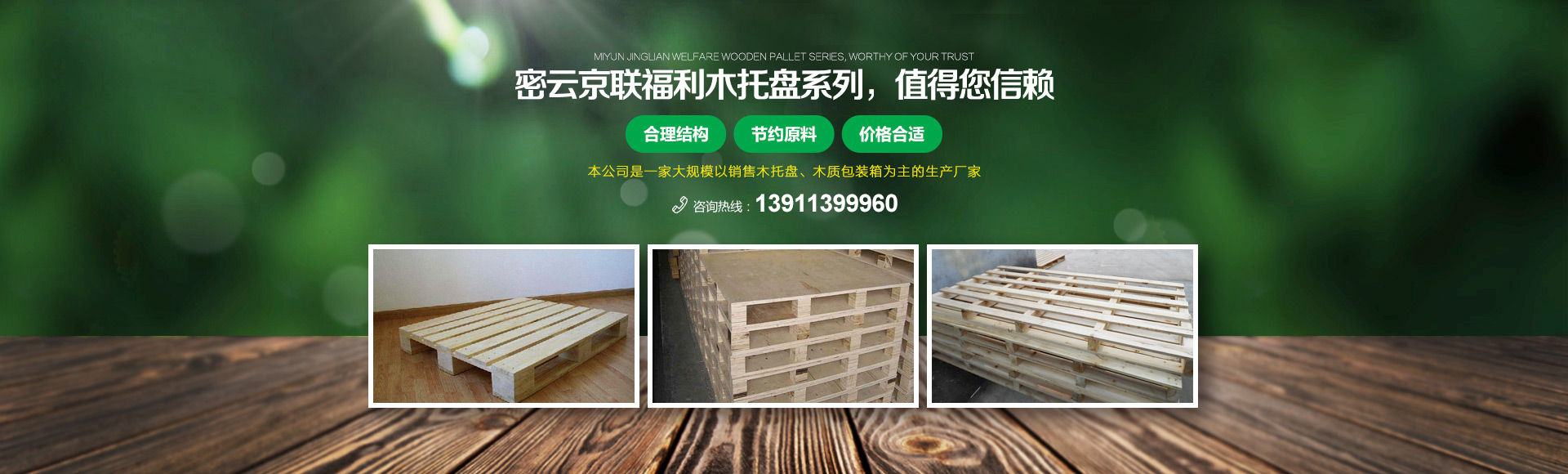 北京京聯(lián)國順木制品有限公司 (原北京市密云縣京聯(lián)福利木制品廠)成立于1993年,位于北京市密云縣西田各莊鎮(zhèn)蒼頭村,占地約5000平米。我公司工廠是一家大規(guī)模以銷售木托盤為主的生產(chǎn)廠家。本工廠是一家直接采購原木,按客戶要求生產(chǎn)規(guī)格尺寸的托盤,我公司工廠位于河北省承德市有著木材加工點,可以做到,從山上的木頭下山到客戶手中的托盤都是一手貨,減少了中間商的費(fèi)用,所以我公司售出的產(chǎn)品對北京這個龐大的市場來說在同樣的規(guī)格尺寸的托盤來說價格比較占優(yōu)勢。
